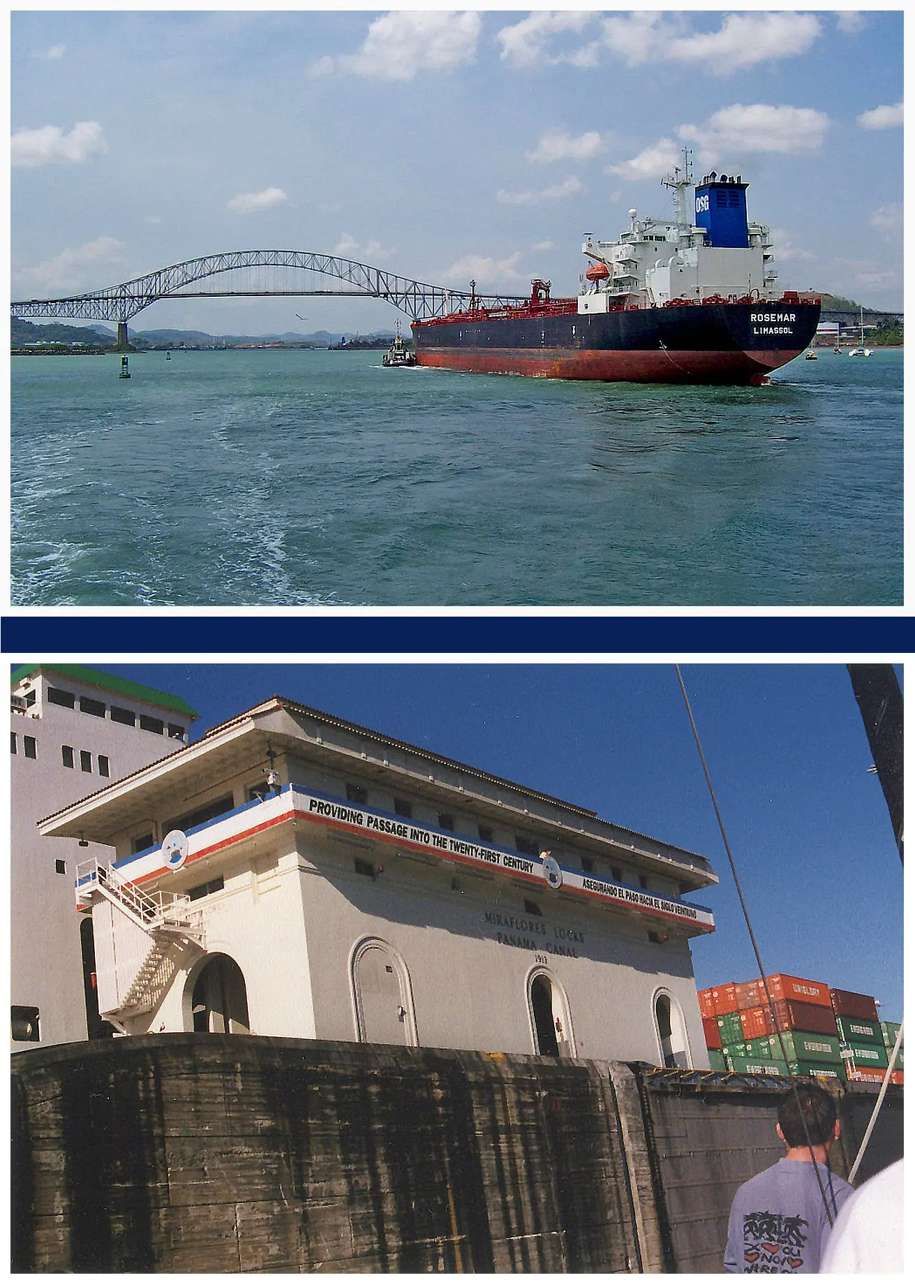 Bild oben: Ausfahrt aus der obersten Schleuse hinter der PETROBULK SIRIUS in den Gatunsee