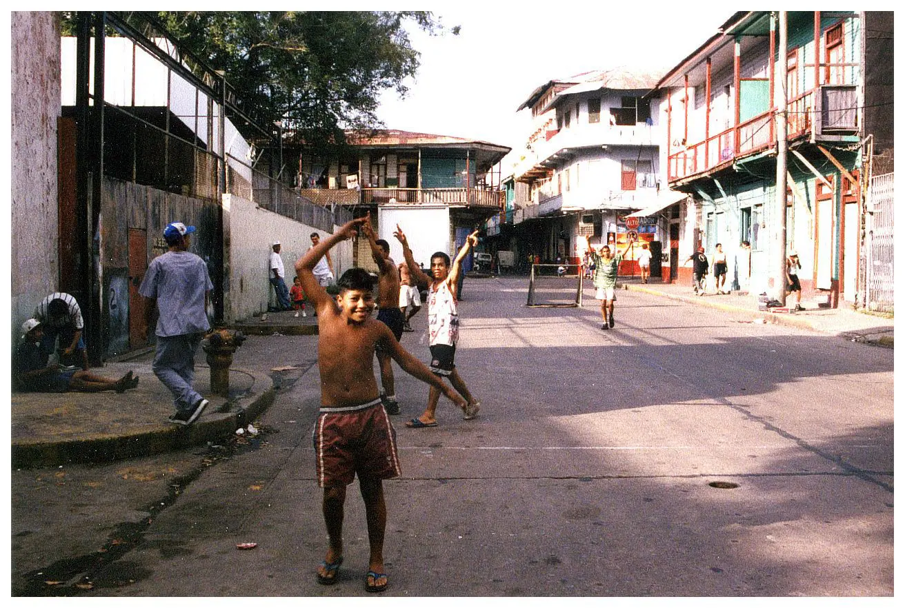 Panama-Altstadt. Der Ort des Überfalls. Die Jungs im Hintergrund sind offensichtlich die Gauner. Anschließend war die Strasse wie leer gefegt.