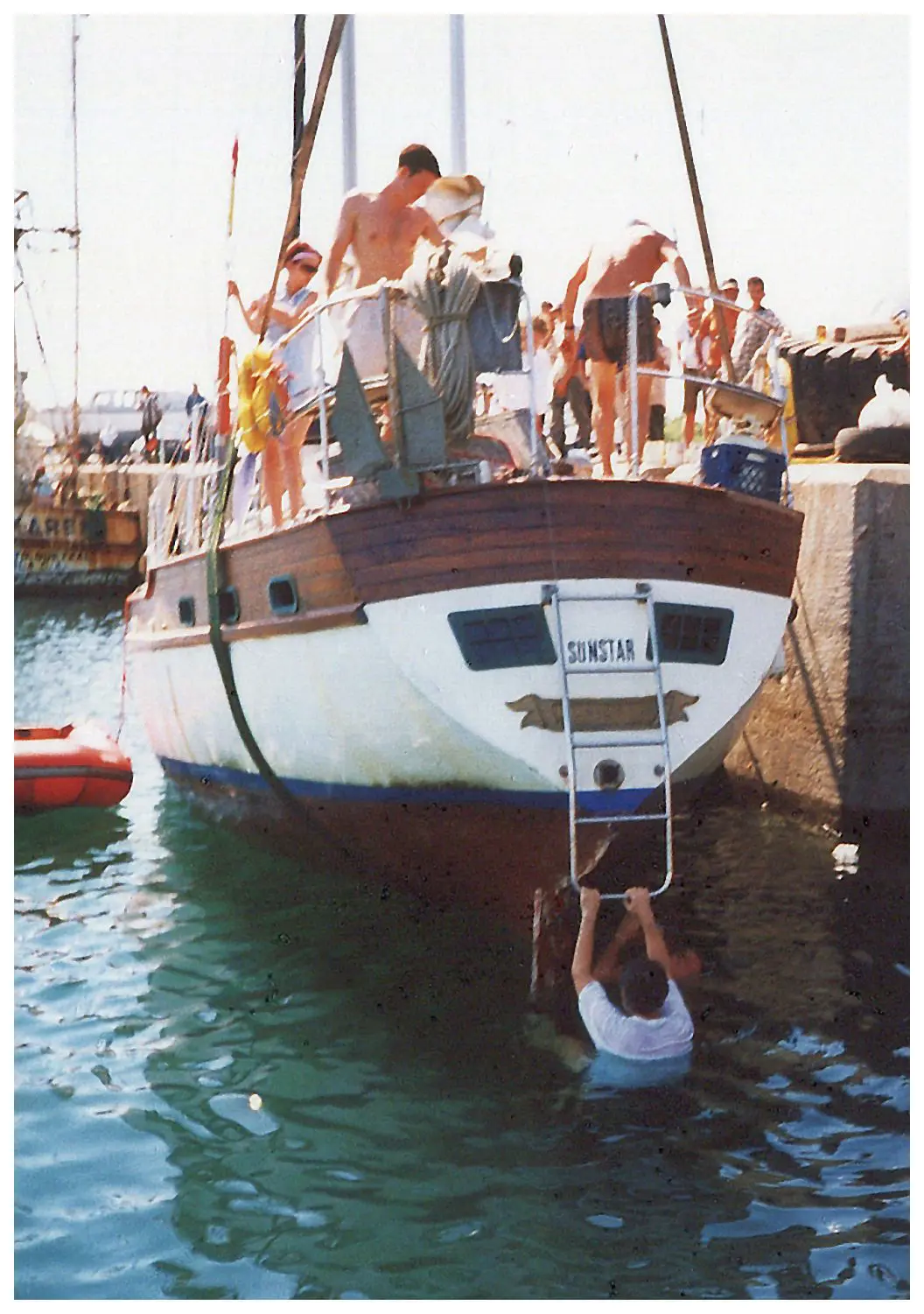 Jetzt war schnelles Handeln angesagt. Eine Ersatzpumpe war zur Hand und wurde montiert sowie die Maschine angelassen. Das Abpumpen ging flott vonstatten und bald war die Bilge trocken, der Kurzschluss beseitigt und es blieb nur noch das verdammte Leck, welches vom Schiffsinneren nicht erreichbar war.