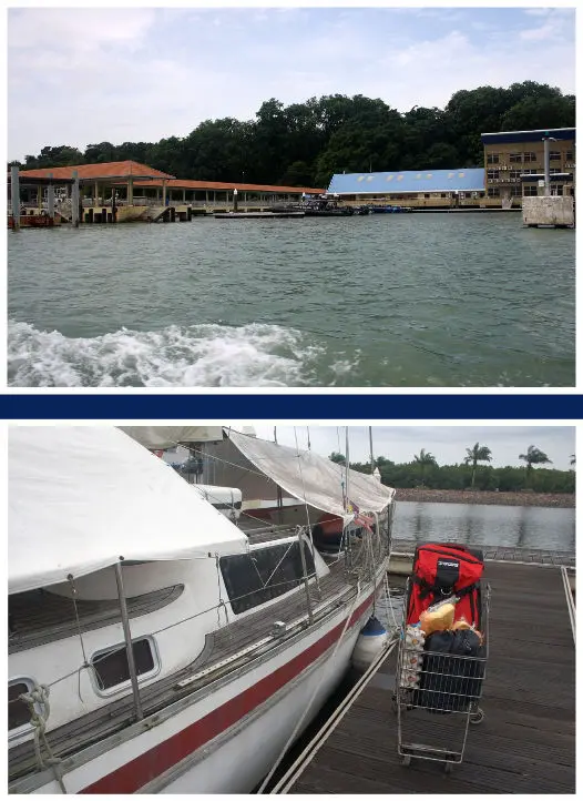 Also kam ich einige Monate später wieder und sollte das Vergnügen haben, von der Marina des Sebana Cove Resort aus meinen nächsten Törn nach Phuket (Thailand) mit Franz und Silja zu erleben. Mein Flug kam in Singapur an einem frühen Vormittag auf dem Changi Airport an. Ich hatte mich vorher sachkundig über die Fährverbindungen nach Tanjung Pengileh gemacht. Eine Direktverbindung zum Sebana Cove Resort ist zwar beabsichtigt, aber noch nicht realisiert. Eine Möglichkeit bestand darin, mit der Bahn oder Bus nach Johor Baru zu gelangen, um dann mit dem Taxi zu Marina zu fahren. Ein kompliziertes und zeitaufwendiges Unternehmen musste man doch einen riesigen Umweg machen und auch noch die Grenze mit dem ganzen Prozedere des Einklarierens passieren. Teuer wäre das ohnehin geworden. Ich konnte zu Hause im Internet mit Sicherheit feststellen, dass ein Bumboat vom Changi Point Ferry Terminal nach Tanjung Pengleh fährt, wenn es denn 12 Passagiere hat. Ich wusste nur nicht, wie lange es dauerte, bis 12 Passagiere zusammen sind. Sind sie es nicht, dann kann man für die fehlenden Passagiere zahlen und man fährt. Ganz einfach. Also brachte mich ein Taxi vom Flugplatz zum Changi Point Ferry Terminal und sucht den dortigen Check in auf. Auf meine Frage nach der nächsten Verbindung, bekam ich von der dort einzigen anwesenden Person, wie sich herausstellte der Mann für alles (MFA), ein Schulterzucken und die vage Antwort: etwa 7-8 Stunden am späten Nachmittag?! Das Bumboat hat keinen festen Fahrplan. Oh je. Ich musste unterwegs noch etwas an Lebensmitteln einkaufen und wollte unbedingt bei Tageslicht ankommen, um auf dem Schiff noch einigermaßen vernünftige Lebensbedingungen zu schaffen, denn Franz und Silja konnten erst am folgenden Tag eintreffen.