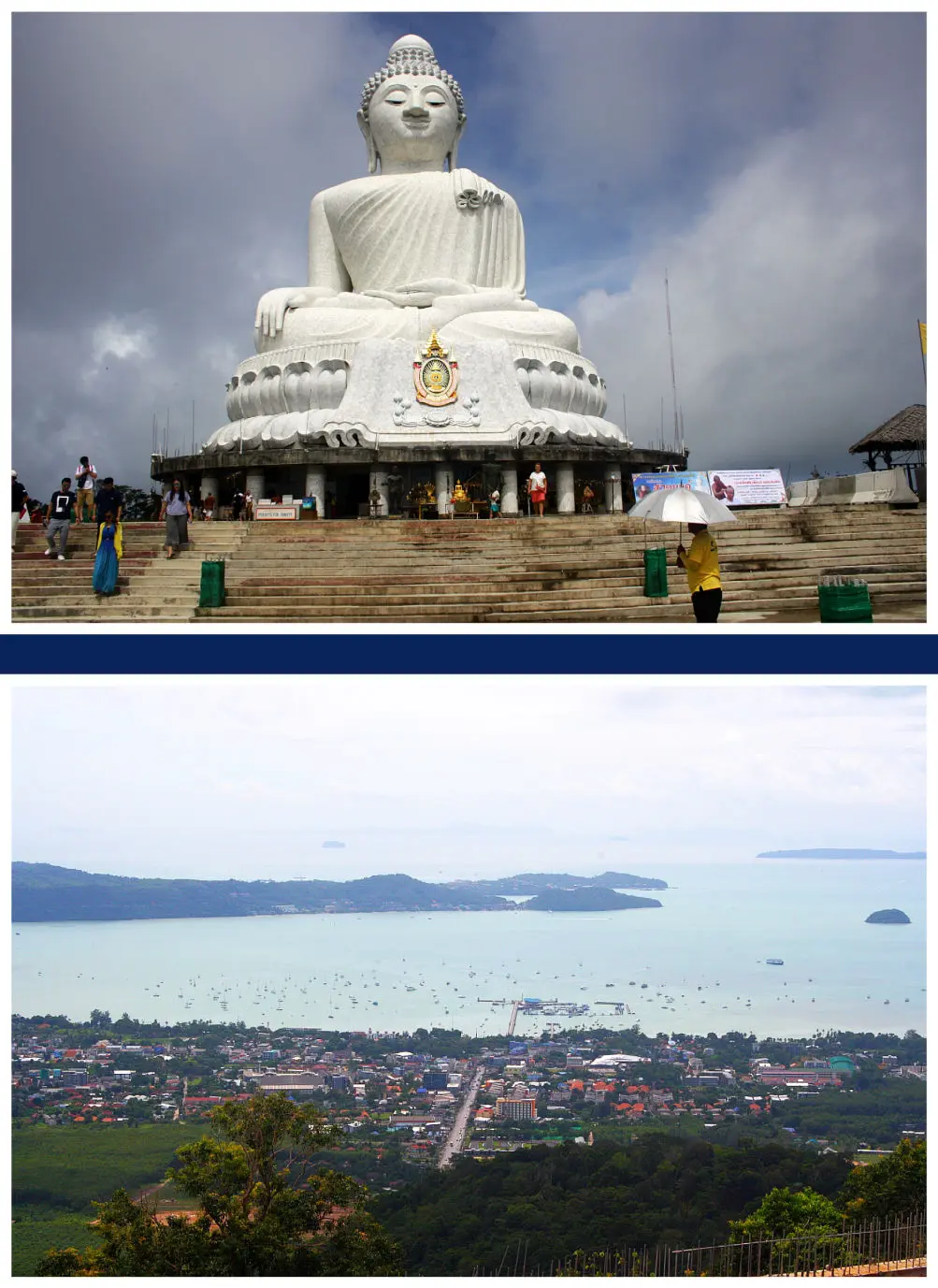 Bild oben: Der riesige Big Buddha (Phra Phuttha Mingmonkhon Akenakkhiri) auf dem Gipfel des Nakkerd Hill