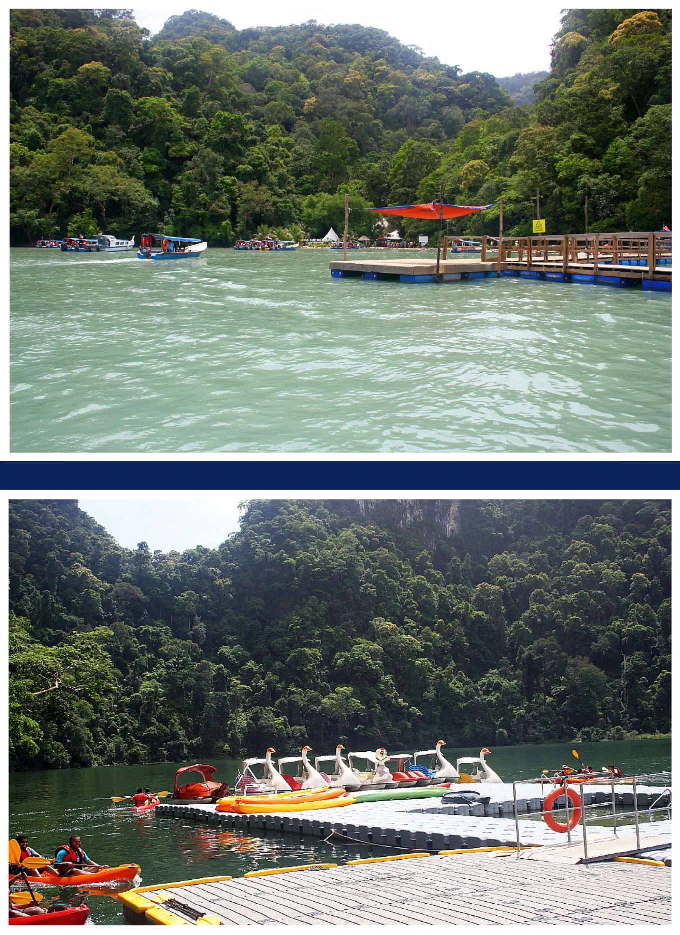 Bild oben: Anleger Dayang Bunting. Die Touris strömen zu Hauf zum See