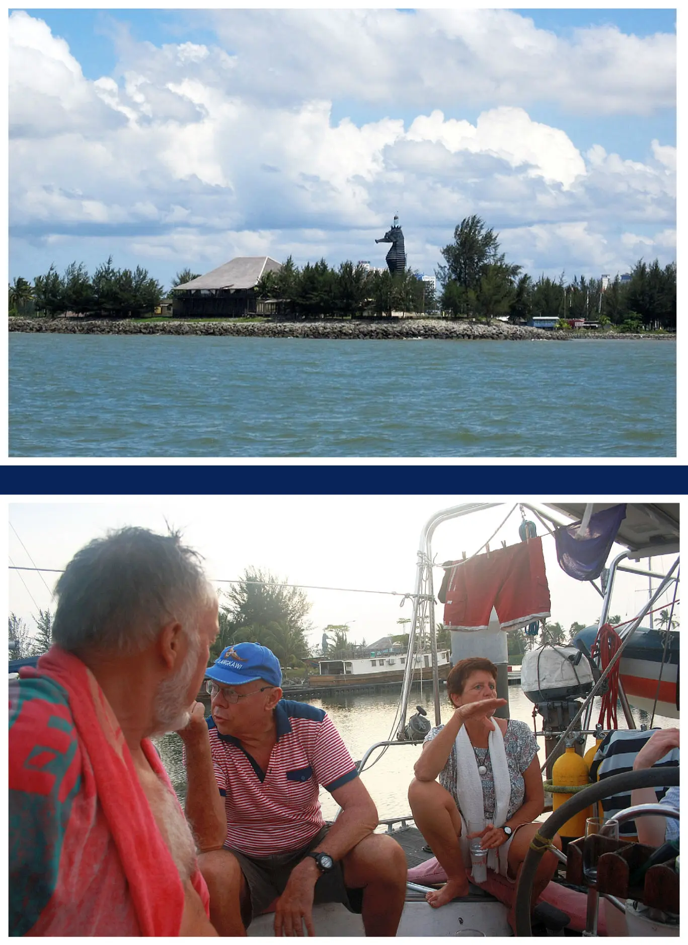 Wir rundeten bei Kuala Baram das Kap und gingen auf Südkurs. Dann hielten wir Ausschau nach der versteckten Einfahrt zur Marina. Die große Sea Horse Statue wies uns dann den Weg. Ein Riesending von Seepferdchen mit einer Positionslampe auf dem Kopf. Übrigens ist das Seepferdchen das Maskottchen der Stadt Miri und man findet es in der Stadt überall. In dieser kleinen gut geschützten Marina lernten wir Ulla Druegemoeller und Klaus-Dieter Schneider auf der SY "Chez Nous" kennen. Es ist eine gemütliche und sehr zweckmäßig eingerichtete Stahlketsch, welche seit vielen Jahren ihr zu Hause ist. Wir verbrachten schöne Stunden miteinander. Ihre Bordkatze Miezi entpuppte sich als sehr neugierig, als sie gewissenhaft unser Schiff inspizierte und meine Koje für würdig fand, ihr als Platz für einen Nachmittagsschlaf zu dienen. Ich pennte dann eben mal im Salon.