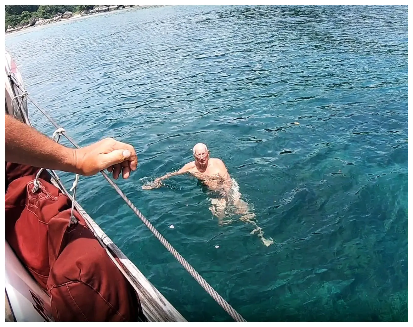 Anlass für Herbert zu einem ersten Tauchgang und für mich zum Austoben im Wasser. Für mich war es zur Regel geworden nach dem Aufstehen als eine Art Frühsport zwei Runden ums Schiff zu schwimmen. Das war allerdings nur dann möglich, wenn wir nicht gerade in einem versifften Hafen festgemacht hatten. So verbrachten wir einige schöne Tage auf diesen Trauminseln und