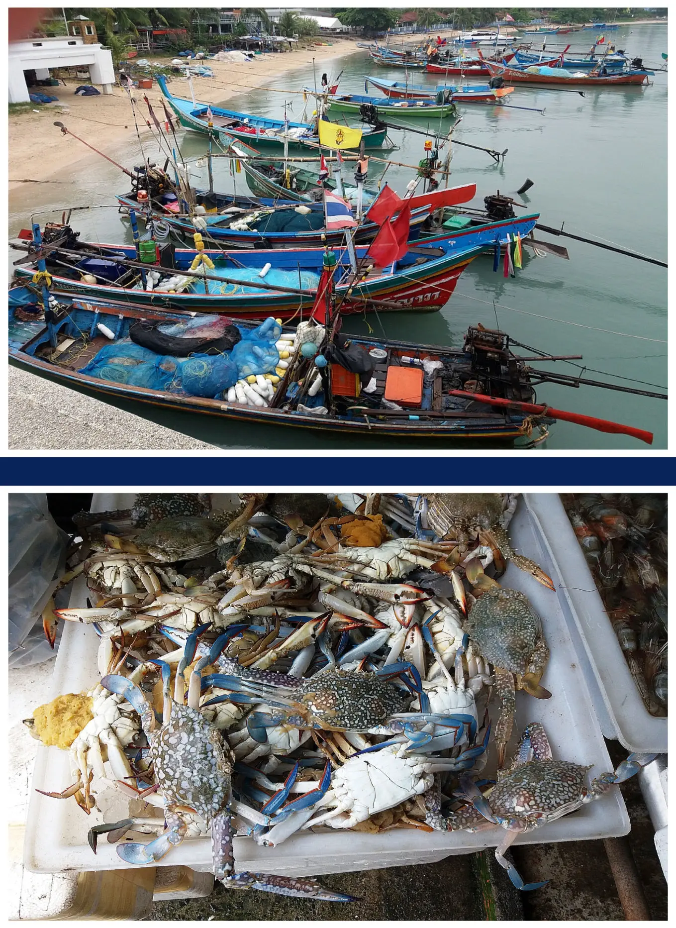 Bild unten: Blaukrabben im Fischmarkt von Nathon