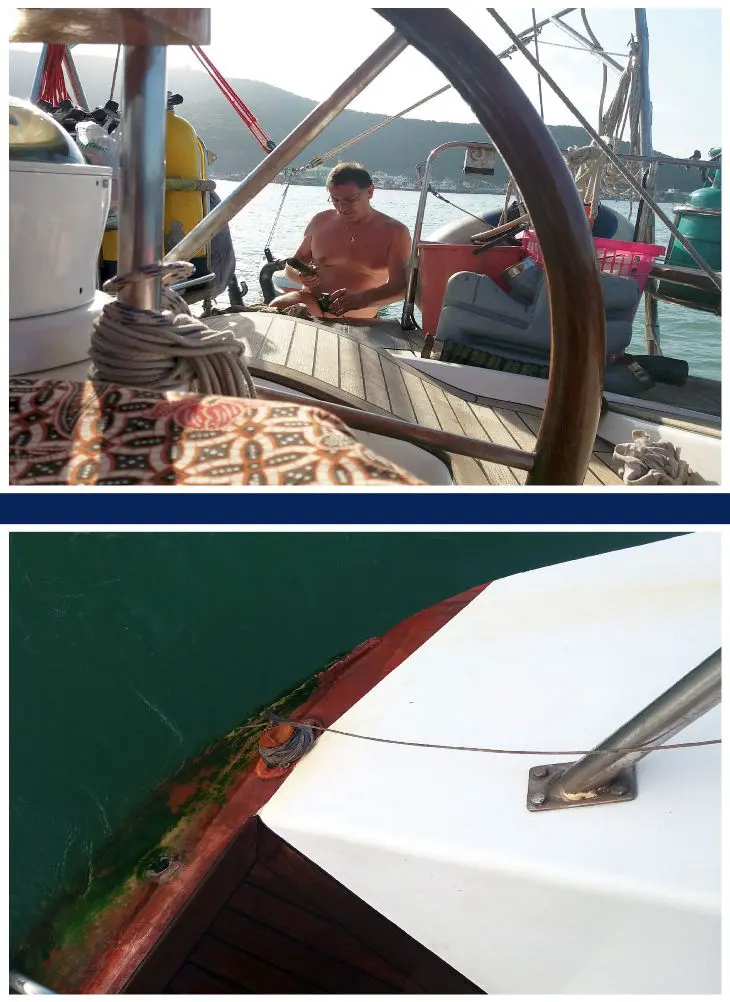 Bild unten: Herbert beseitigt die schlimmsten Unfallstellen auf den schrottigen Fischerbooten.