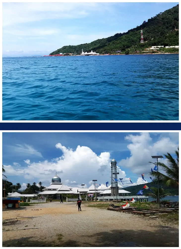 Nur zwei Dinge, welche wir dringend benötigten, gab es nicht. Das war Geld in Form von Ringgit und SIM-Karten für das Handy. Hier, wie auch auf anderen Inseln, gibt es dazu keinen Bedarf für den Verkauf. Die Touris bringen alles mit und wann kommt hier schon mal ein Segelboot auf langer Reise vorbei. Unsere paar Ringgit reichten für gutes Essen im Restaurant des Barat. Als erstes besichtigten wir die Insel mit dem Hauptort Kampong Pasir Hantu und der riesigen Moschee, der Masjid Besar. Ein silberfarbener Prachtbau, bei dem man sich nur wundert, warum er für die paar Einwohner so groß ist. Vielleicht kann man Mo-scheen nicht klein bauen. Ein Film von Walter verdeutlicht das Geschehen.