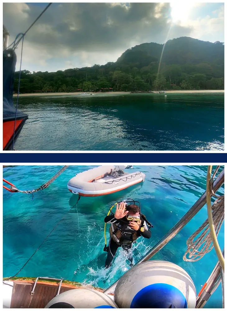 So kamen wir nach einer weiteren ruhigen Nacht vor den Inseln Perhentian Kecil und Perhentian Besar an und machten an einer Boje gegenüber dem Resort Barat in der Durchfahrt der beiden Inseln fest.
