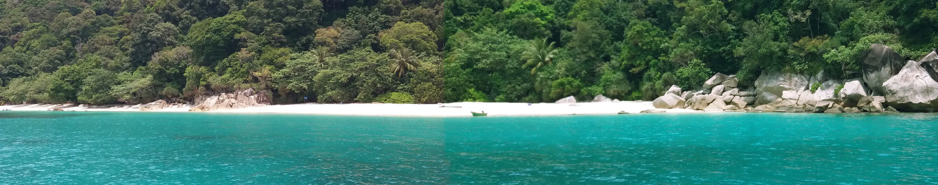 Bild oben: Pulau Perhentian Kecil mit dem Ort Kampong Pasir Hantu