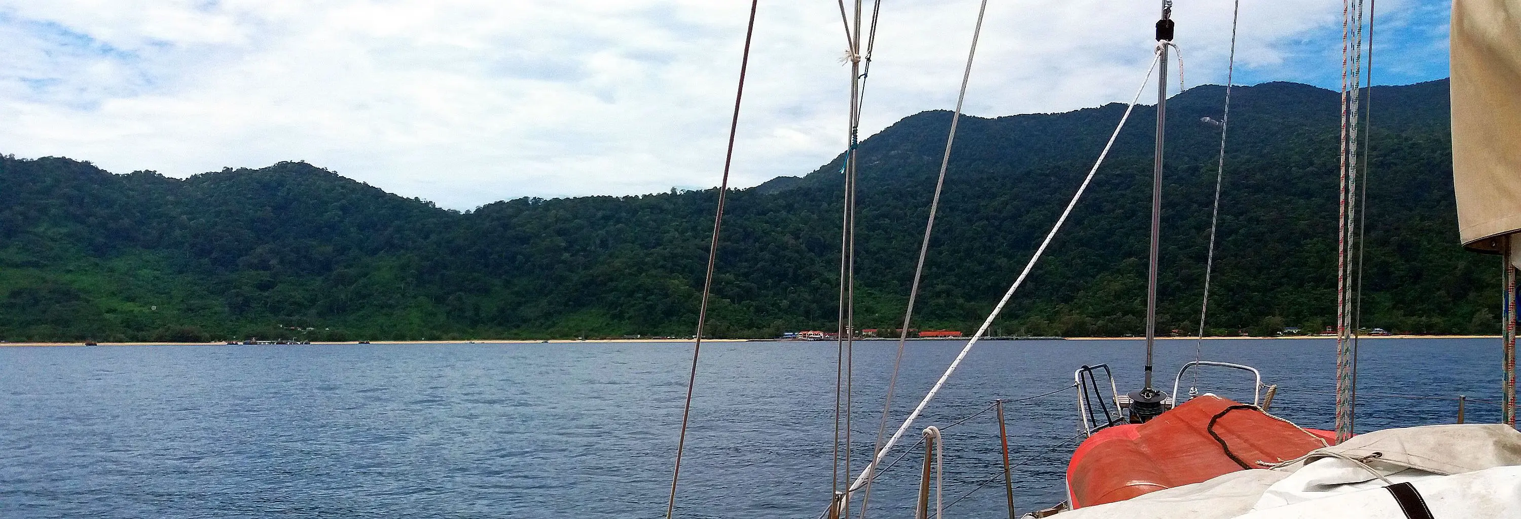 wir beschlossen die große Stadt Terengganu auf dem Festland aufzusuchen, nicht nur um unsere Lebensmittelvorräte aufzufrischen, sondern auch Geld und SIM-Karten zu erstehen. Es waren so um die 40 sm, nicht allzu weit und wir wollten gegen Mittag dort sein. Der Wind blies wieder ständig moderat aus Nordost und wir lagen gut in unserem Zeitplan.
