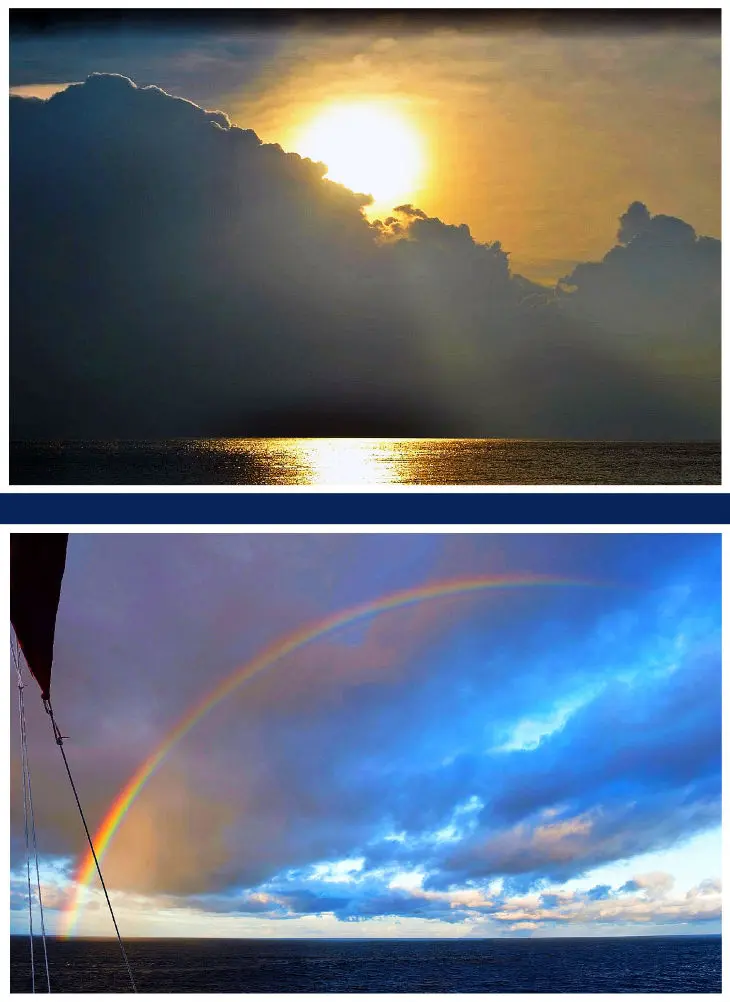 Bild unten: Die See hat sich beruhigt, das abziehende Unwetter belohnte uns mit einem Regenbogen