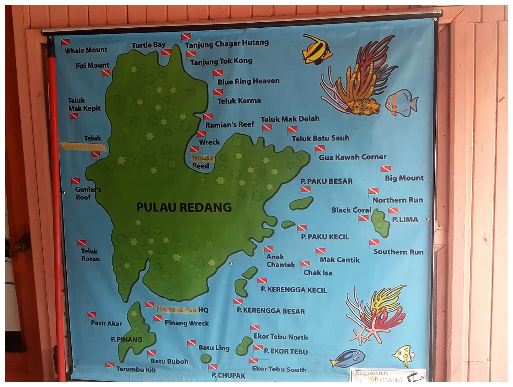 Die Pulau Redang ist ein Paradies zum Schnorcheln, Tauchen und Nichtstun am Strand. Dazu bieten sich die umliegenden Korallenriffe und kleineren Inseln an. Im Nordwesten der Insel stehen einige Strände unter strengem Naturschutz, da hier noch immer die geschützten Seeschildkröten zur Eiablage kommen. Die ganze Inselgruppe besteht aus neun geschützten Inseln, zu der auch die Pulau Redang gehört. Sie sind Teil eines geschützten Marineparks. Die Regierung schützt hier das Meeresleben mit strengen Regeln hinsichtlich der Fischerei und dem Schutz der Korallen. Auch Schildkröten werden in verschiedenen Schildkröten-zentren geschützt. Die meisten Schildkröten, die auf Redang an Land kommen, sind Green of Hawksbill Schildkröten (Hawksbill sea turtle). Also stinknormale Karretschildkröten.